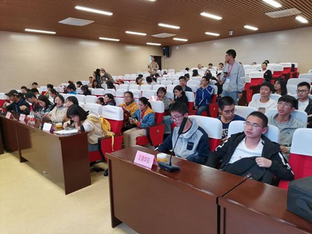 在各学院有序抽签并对应入座后,比赛在主持人的宣布下正式开始。比赛共分三轮,第一轮为选手轮答题,选手们个个机智果敢、表现镇定,最后的比分也是难分伯仲。进入到第二轮的队伍抢答题,选手们为夺得题目的回答权拼尽全力,特别是交通学院的参赛人员在本环节中表现自信果断,连夺4题,拉开了与其他学院参赛队伍的差距,与此同时观众鼓掌声不断,赛场气氛热情高涨。在最后一轮风险抢答题中,选手们为赶超其他队伍的分数个个迁思回虑,考虑慎重。最后,交通学院队伍稳中求进以小组第一的成绩进入决赛。