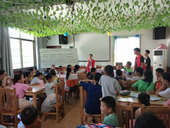 7月27日,交通学院湘水支教团英雄岭分队开展以“化学实验揭示科学现象,趣味数学巧解生活难题”的科学探知类主题课程。