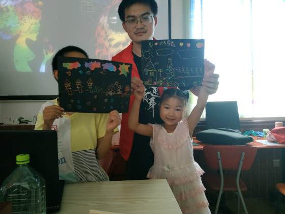 上午,志愿者将趣味性十足的刮画艺术带入了课堂,孩子们在志愿者老师的指导下,自由的发挥创造力,创作出一幅幅美丽的刮画作品。教授的刮画艺术课,让孩子们在创作力的锻炼与强化上得到了进一步的提升。