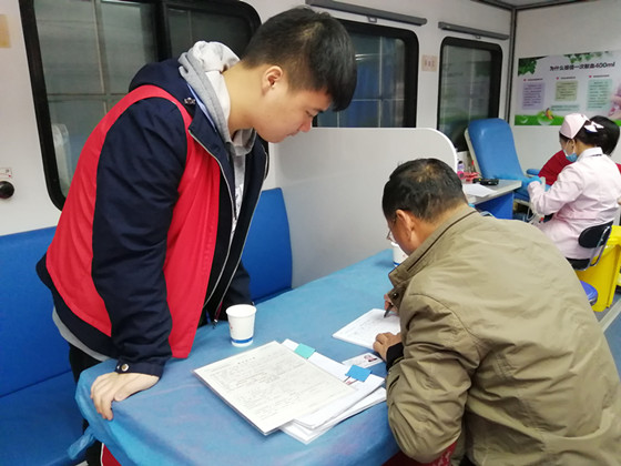4月13日,交通学院青志协献血车志愿团在红星大市场开展献血车志愿服务活动,李雅娜、张阳、颜振鸿和刘黔东参与本次活动。