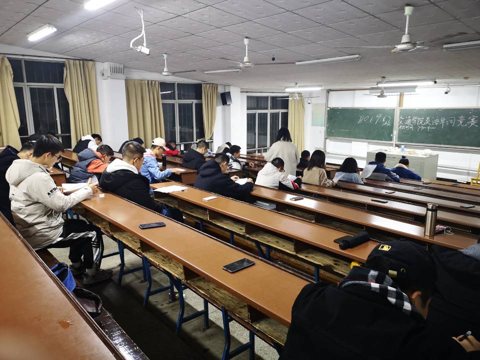 为激发学生学习英语的兴趣,丰富词汇量,提高英语综合素质,11月26日下午,交通学院于金盆岭校区十二教、云塘校区工科二号楼举办英语单词竞赛。本次竞赛由304永利集团官网入口校学习部干事、交通学院学习部干事共同监考,交通学院两百六十余名同学参与。