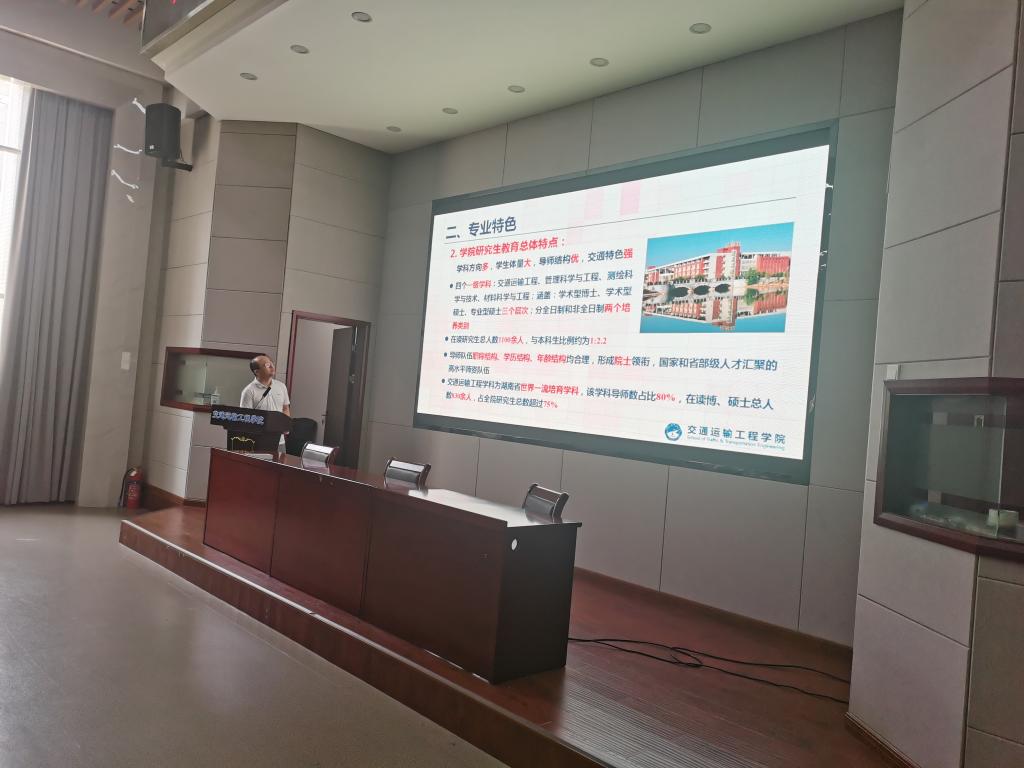 高英力详细分析了近5年来学校、学院硕士研究生报考和录取情况,他从学校声誉和影响力、师资力量、学科特色、创新平台、科研实力、培养效果、科研实践创新项目资助力度等七个方面对学校研究生教育工作进行了介绍。随后他用详实的数据、严谨的分析对比,从学院基本情况、学科特点、专业特色、师资队伍、办学实力以及学生就业等方面宣传了学院在研究生培养方面的实力和优势,让同学们更深入了解了学院的研究生教育现状,他鼓励同学们积极报考304永利集团官网入口交通运输工程学院。