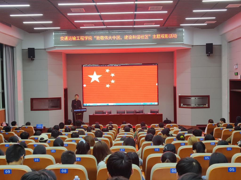 为庆祝新中国成立71周年,进一步激发学生的爱国热情,引导学生继承和弘扬爱国主义光荣传统,加强精神文明建设,营造健康向上、朝气蓬勃、团结奋进的社区良好氛围,9月27日晚,交通学院自管会组织社区学生于工科二号楼交通科技报告厅开展“致敬伟大中国,建设和谐社区”主题观影活动,学院党委副书记王煜坤、学工办老师曹骁出席本次活动。