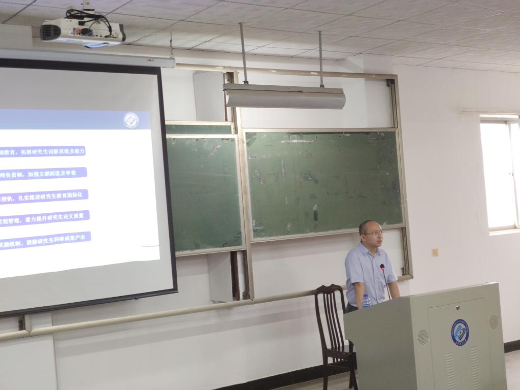 同时,高老师着重强调了学院立足于夯实基础教育、完善导师负责制、加强国际接轨、严控培养过程、出台奖励机制等五个方面提升研究生培养质量。反复强调了文献的重要性,为我们的研究生生涯敲了一个警钟,提醒同学们要重视学习,了解学习的重要性,在研一阶段就要紧张起来。最后,高英力对同学们提出殷切希望,期望同学们勤于动脑、敢于质疑,勇于创新,并勉励全体同学要心无旁骛的钻研学术,争取在研究生阶段取得令人满意的成果。