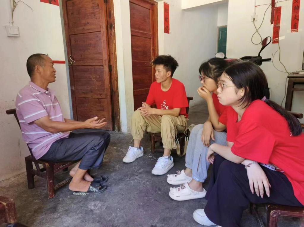 骄阳烈日不阻调研决心,团队成员迎热浪而发来到居民家中进行入户走访。村民杜爷爷热情款待了各位成员并向他们介绍村中的交通情况,他说到:“村里到镇上一天只有一趟早上6点的班车,即使骑摩托也要半个小时,且村里的路修建于上世纪80年代,年代久远,很不好开,平时出行十分不便。”团队成员还调查到,村内年轻一代网购次数频繁,但快递点距离遥远,运费较贵,麻烦之处很多。