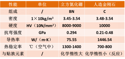表3 立方氮化硼与金刚石性能对比