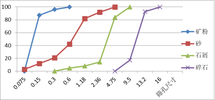 图 6. 拟采用水泥/沥青混凝土骨料的级配曲线