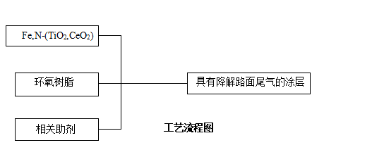 式中,ηi为纳米TiO2对汽车尾气中第i种气体的降解效率;ci0为测试开始时汽车尾气中第i种气体的初始浓度;ci为测试结束时汽车尾气中第i种气体,从而降低空气中的汽车尾气污染物。