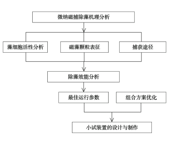本项目将以基于铁锰氧化物的微纳磁捕除藻技术的原理分析和效能研究为基础,拟将太阳能发电装置、微纳磁捕除藻系统和浮游装置集成优化,明确组合小试装置的最佳工况参数,同时实现除藻、抑藻和藻水分离的功能。本项目的成功实施,将对水体藻污染治理具有重要的实际应用价值,并且太阳能浮游式微纳磁捕除藻小试装置将化学氧化除藻技术和藻细胞磁分离技术进行有效结合,能量自给,二次污染低,易于推广。