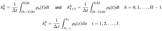 将路段划分为I个元胞(每个长度为 ,记作i),时间划分成H个时间步(每个时长为 ,记作h)。为了满足Courant-Friedrichs-Lewy(CFL)稳定性条件,没有车辆可以在一个时间步中行驶出一个元胞,即 。