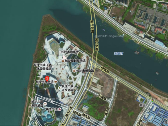 该项目主要以长沙市三馆一厅为例。三馆一厅位于园位于长沙新河三角洲,西滨