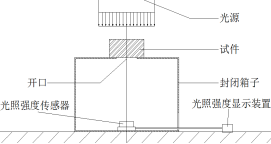描述不同条件下试件的透光能力。如图1和图2所示,该试验的试验仪器主要有自制测试箱、DT-1307CEM华盛昌太阳能测试仪、高强光源。整个测试箱除上部和右侧开适当口径,装置为封闭不透光结构。