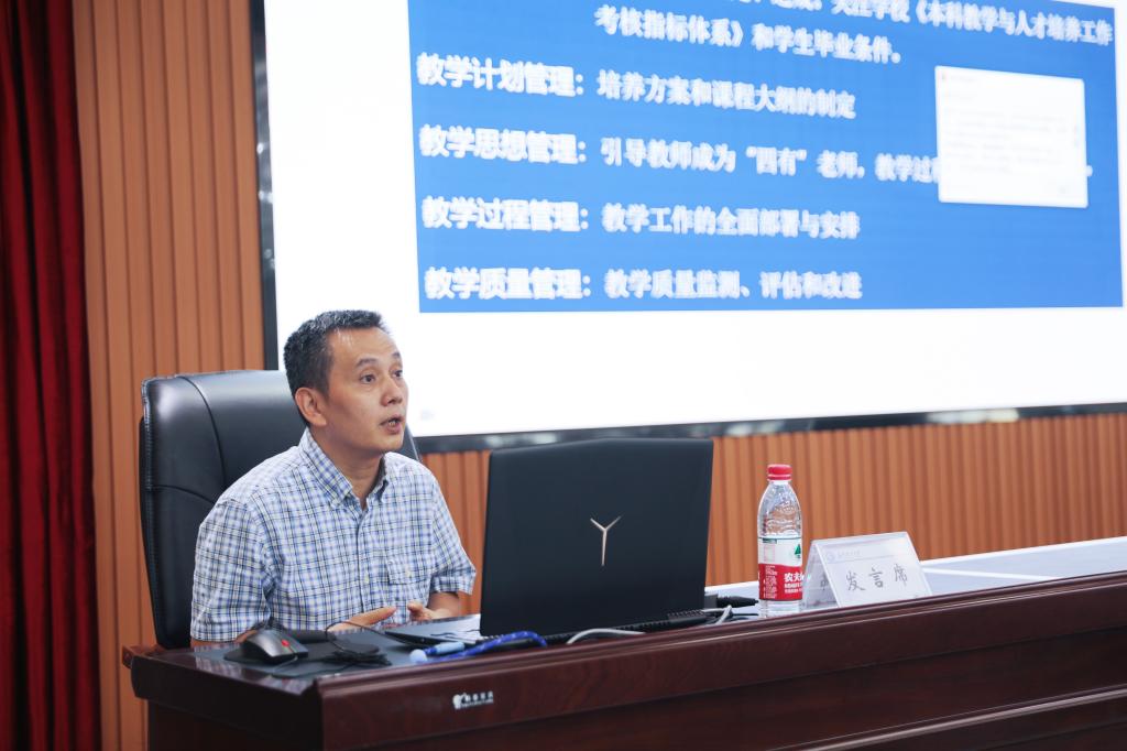 最后,副校长刘朝晖总结发言。刘校长深入分析了国内外高等教育发展趋势,指出在高等教育步入普及化发展的新阶段,新一轮科技革命与产业变革给高等教育改革带来了新的机遇与挑战,同时对高等学校人才培养质量提出了新要求。他指出,本科人才培养任重道远,教学管理人员要加强学习,提高政治站位,充分把握、理解新时代党的教育方针,学习贯彻全国教育大会精神,坚持立德树人;深入了解新高考改革对高校教学的影响与冲击,学习理解新一轮《本科教学审核评估指标体系》内涵。他告勉管理人员要深入调查研究、做好本职工作,正确处理教与学的关系,为实现永利官网“十四五”发展目标和百强大学建设目标,培养高素质复合型人才努力奋斗、开拓创新。