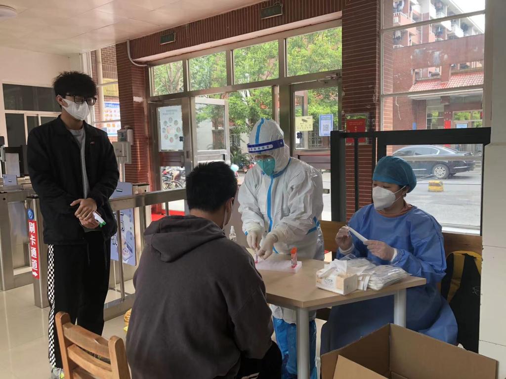 4月份以来,教务处党支部9名党员同志投身学校抗疫一线开展志愿服务,在学校核酸检测点,协助医护人员开展核酸采集信息扫码、流程指引、人员疏导、秩序维护等相关工作。在校门口,教务处党员干部们坚守应急值周岗位,督促教职工佩戴口罩、扫描场所码有序进入校园,努力为疫情防控工作贡献力量!