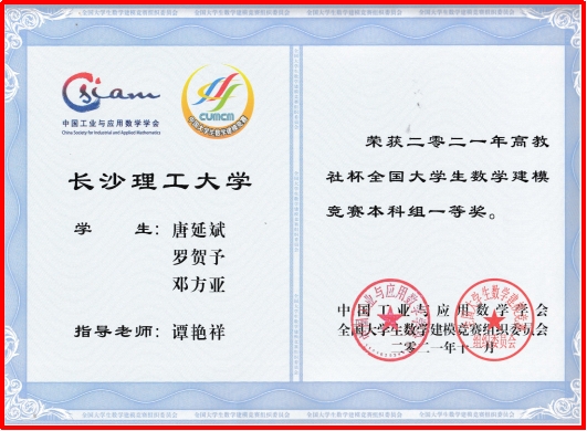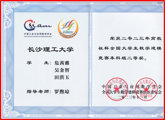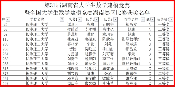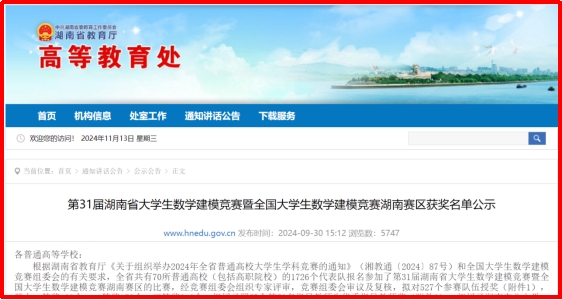 同时,近日,湖南省教育厅高等教育处发布了“第31届湖南省大学生数学建模竞赛暨全国大学生数学建模竞赛湖南赛区获奖名单公示”的通知,永利官网在第31届湖南省大学生数学建模竞赛暨全国大学生数学建模竞赛湖南赛区的比赛中获得一等奖2项,二等奖4项,三等奖7项。