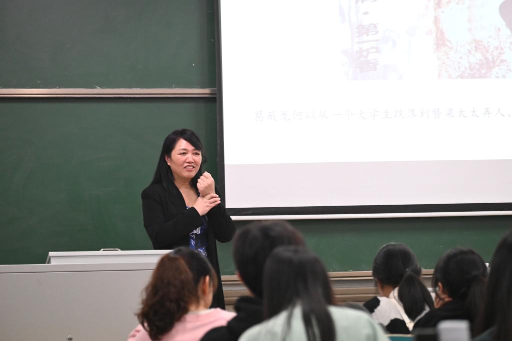 主持人刘月蓉同学向大家简要介绍了主讲人黄宇老师。在同学们热烈的掌声中中国现当代文学中美妙的爱情开始浮现。黄宇老师从爱情价值几何、中国文学中爱情与事业的冲突模式、绝对恋爱之象征等方面结合鲁迅的《伤逝》、徐志摩的散文、张爱玲的小说等中国现代文学作品,为大家解释了爱情的真谛是时时更新、生长和创造;爱情中需要追求安稳,以保障物质生活为先;在爱情中保障每个人都是独立个体的同时,需要给足对方安全感。