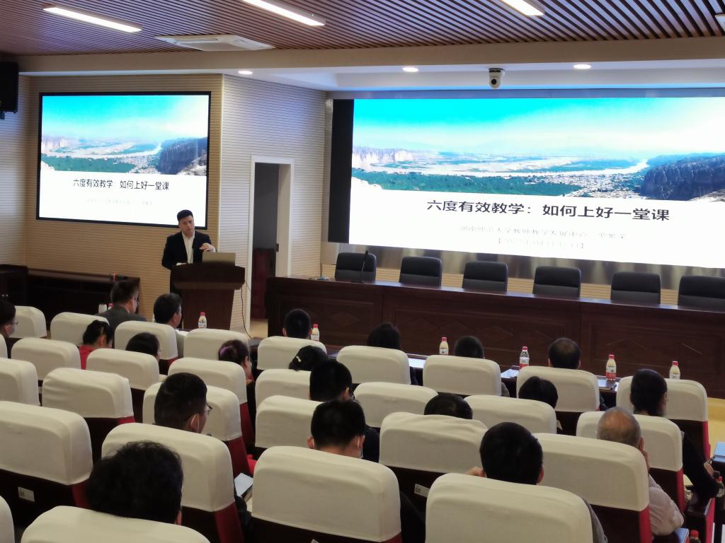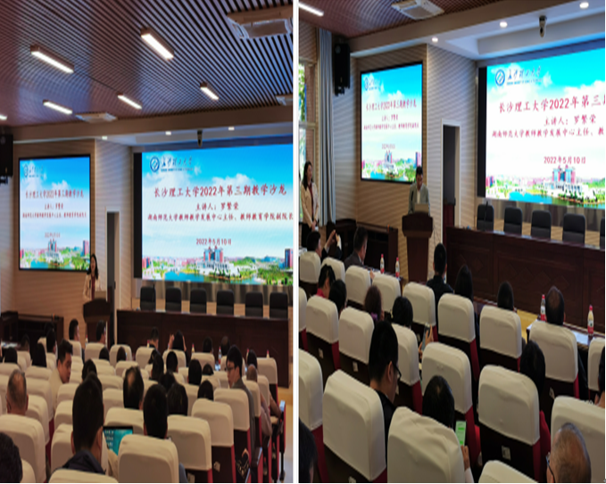 2022年5月10号下午,由教学质量监测与评估中心主办,数学与统计学院承办的304永利集团官网入口2022年第3期教学沙龙在云塘校区理科楼A200举行。本期沙龙主题为“教学竞赛经验研讨与交流”,特邀嘉宾湖南师范大学教师教学发展中心主任、教师教育学院副院长罗繁荣作了题为《六度有效教学:如何上好一堂课》的专题讲座。活动由教学质量监测与评估中心副主任贺晖主持,副主任胡伟、王芳,数统学院党委书记邓崛峰、院长张宏伟、副院长仝青山、王佳伏、李姣、学院全体教师以及来自16个兄弟学院的150余位教师参加了此次活动。