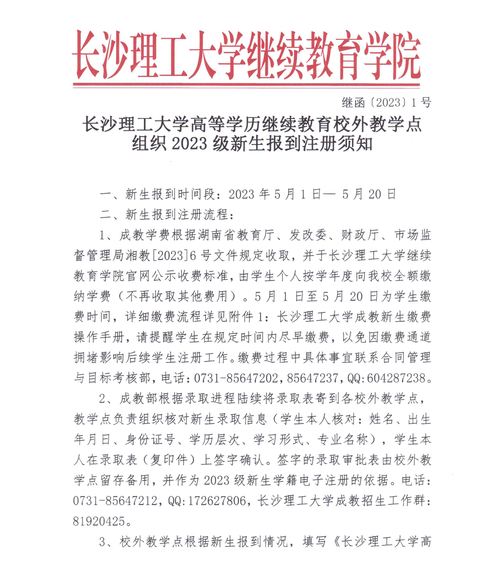 304永利集团官网入口高等学历继续教育校外教学点组织2023级新生报到注册须知