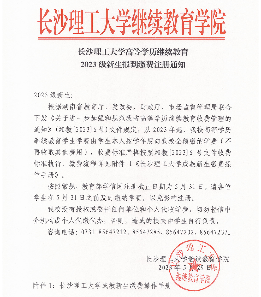 304永利集团官网入口高等学历继续教育2023级新生缴费注册补充通知