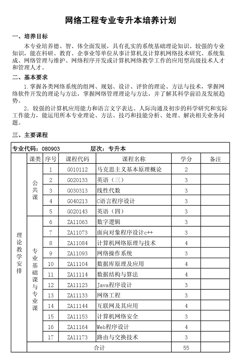 本科培养计划-专业代码:080903 网络工程专业