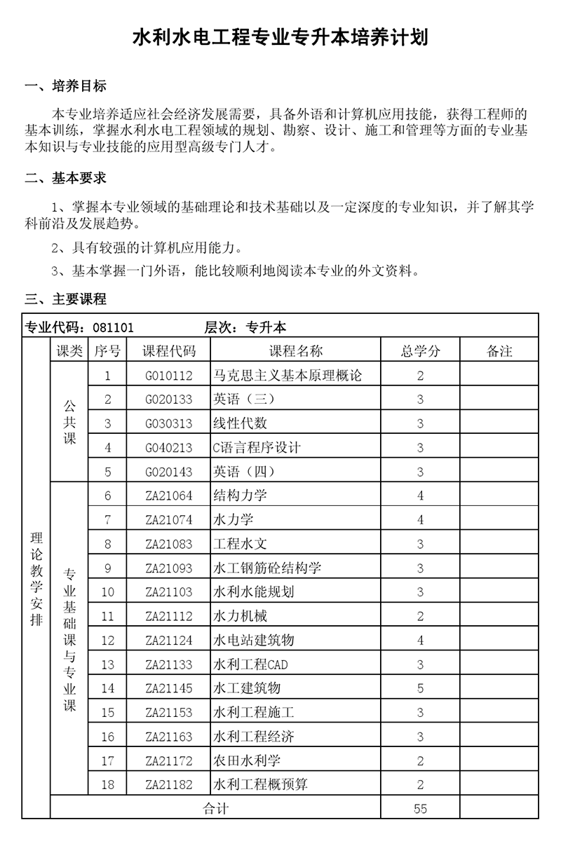 本科培养计划-专业代码:081101 水利水电工程专业