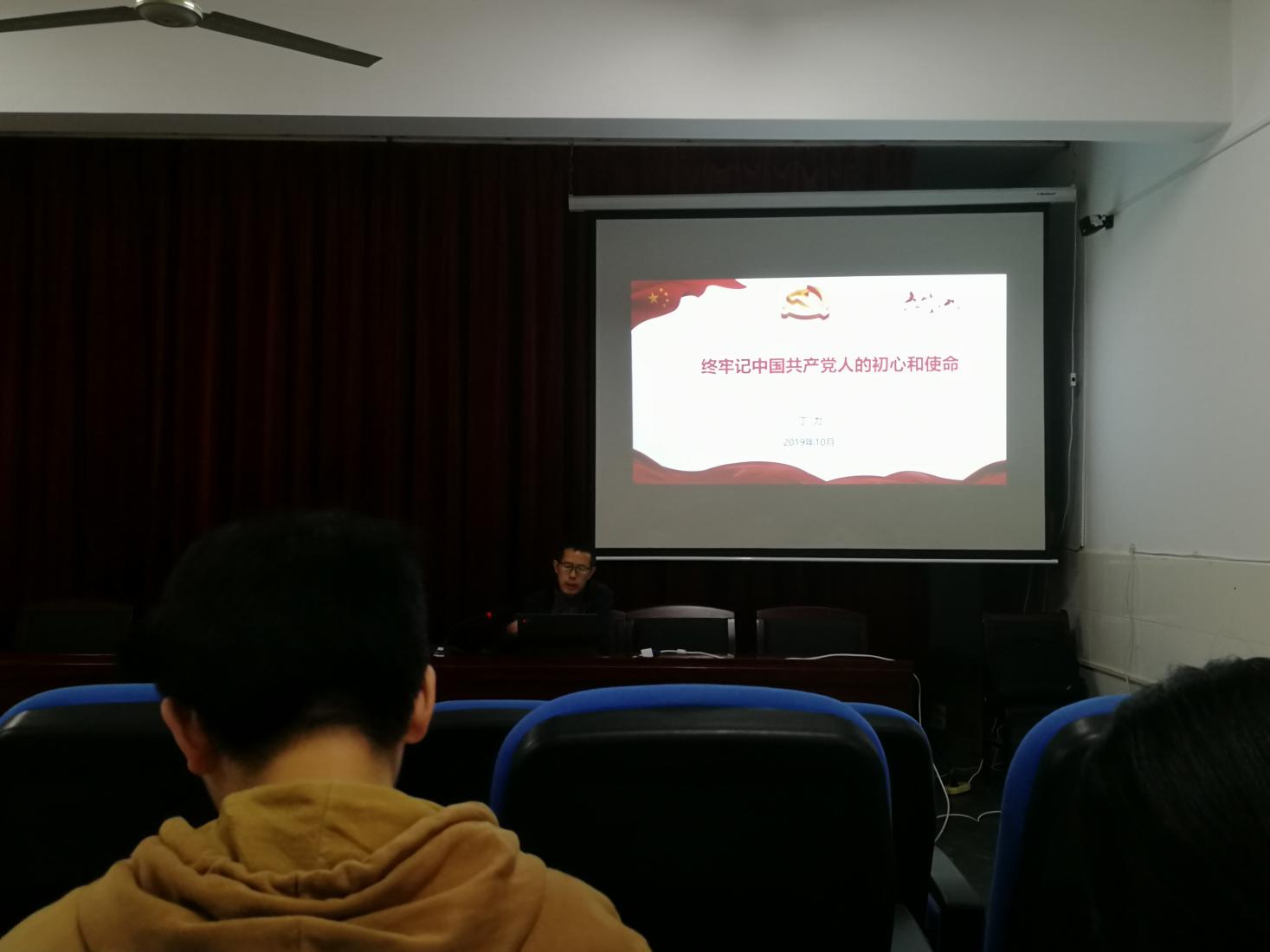 接着,丁书记从“因之而立,思想建党”、“因之而兴,开辟历史”、“因之而强,引领未来”三个方面向我们介绍了为何要牢记中国共产党人初心和使命。从中我们了解了中国共产党创建历程之艰险、社会主义事业发展之曲折、中华民族复兴之希望。