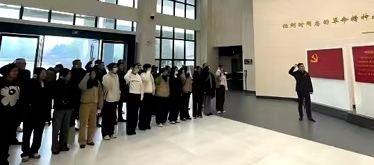 参观结束后,在学院党委书记熊鹰同志领誓下,全体党员面向鲜红党旗,重温入党誓词“我志愿加入中国共产党……”铿锵有力的誓言在纪念馆内久久回荡,彰显了大家不忘初心、牢记使命,矢志为党和人民事业奋斗终生的坚定信念。