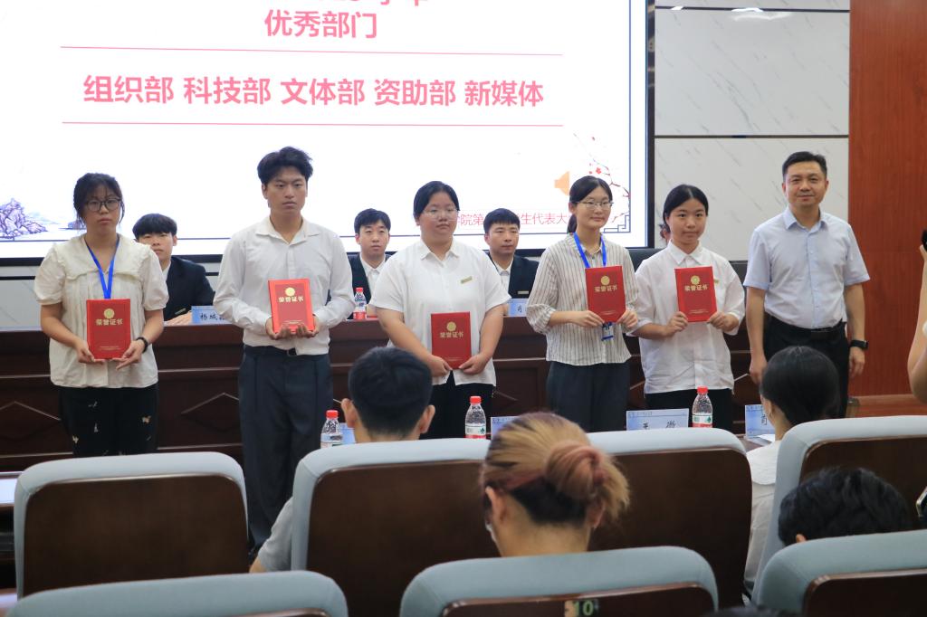 随后,熊鹰发表讲话,表达了我院党委对过去一年学生会工作的关注与肯定,希望大家以此次大会为新起点,用脚踏实地的奋斗书写“挺膺担当”的青春答卷。接着,大会表彰了在过去一年中有杰出贡献的部门、个人。