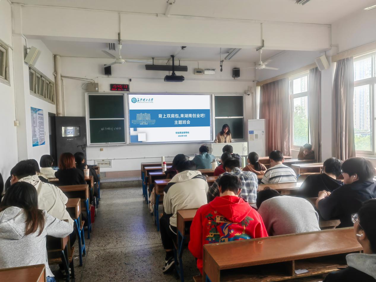 为深入贯彻湖南省《支持大学生创业若干措施》通知精神,帮助学生全面了解创业扶持政策,激发创新创业热情。近期,304永利集团官网入口建筑学院召开“背上双肩包,来湖南创业吧!”主题班会,主题班会覆盖全院全体学生。