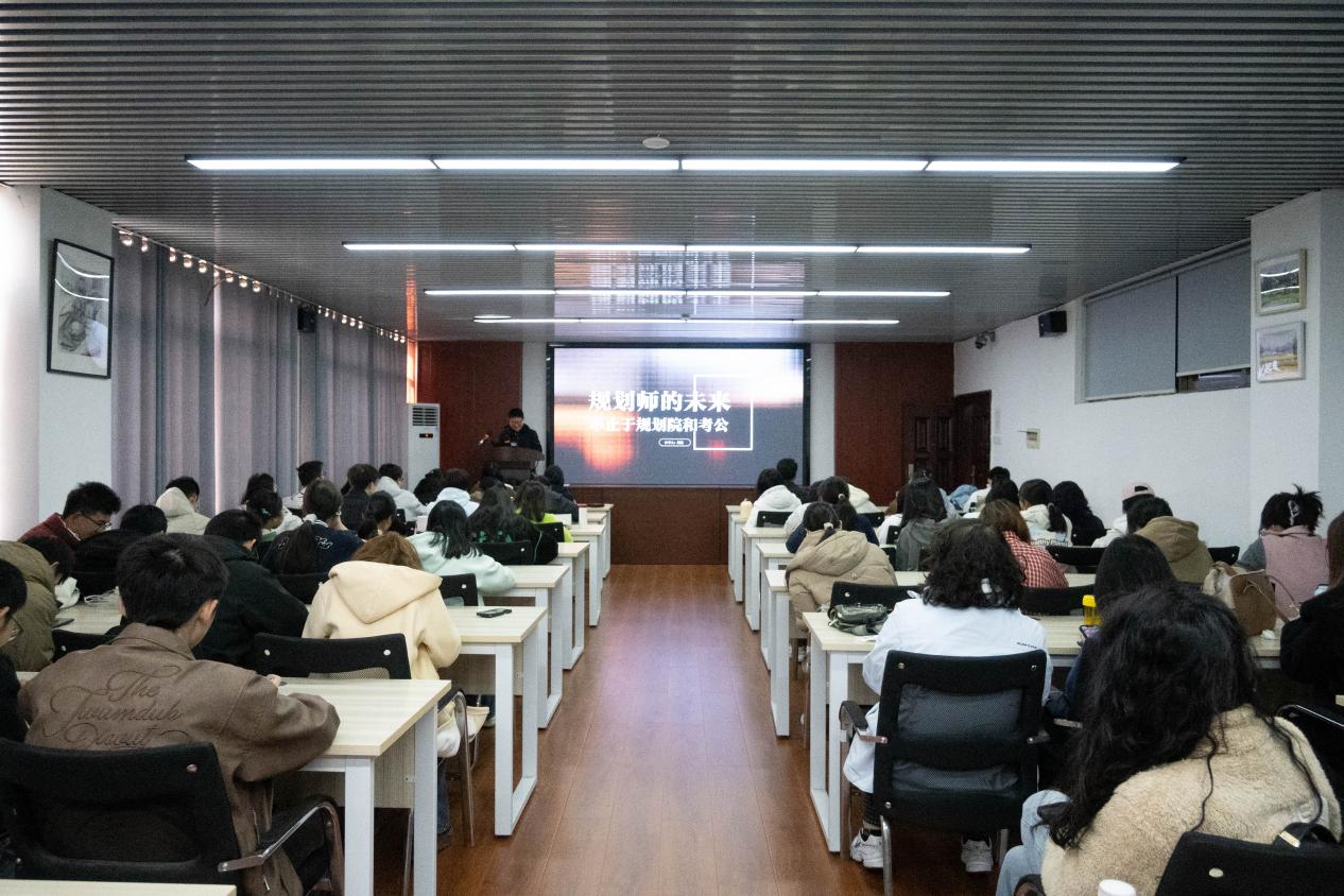 2025年12月18日上午,湖南楚林集团创始人、国土空间一级规划师康健女士应邀为我院城乡规划专业全体2025级本科及研究生新生开展了一场别开生面的生涯规划讲座。本次讲座由城乡规划系主任贺鹏主持,旨在帮助新生在专业学习之初树立清晰的发展方向,探索多元成长路径。