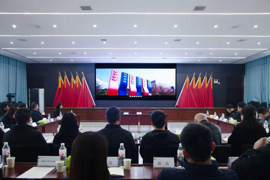 宣传片观看结束后,合作双方先后致辞,共话校地协同发展愿景。肖义慧介绍了学院在人才培养与社会实践方面的特色。他表示,学院将积极组织师生围绕乡村规划优化、红色建筑传承、基层治理提升等重点领域开展实践,努力把论文写在大地上,共同打造校地合作典范。