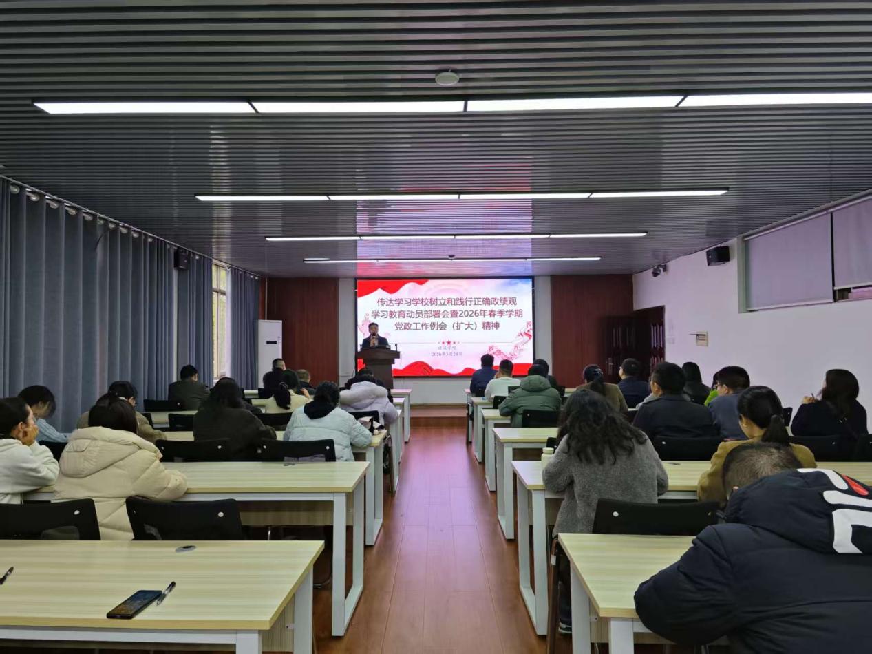熊鹰传达学习学校树立和践行正确政绩观学习教育动员部署会暨2026年春季学期党政工作例会(扩大)精神、2026年全面从严治党工作会议暨警示教育大会精神,并围绕2026年学院工作作出要求:一是强化政治引领,抓实班子建设、基层党组织建设、师资队伍建设和意识形态工作,筑牢发展根基;二是深化教学改革,聚焦专业建设与教学团队培育,以青年教师教学竞赛为抓手,强化实践教学与学科竞赛能力,探索AI与教学深度融合路径;三是加强学科科研,夯实学位点建设与质量监控,着力提升科研成果产出质量,优化学术导师队伍,结合校庆开展高水平学术交流活动;四是优化学生工作,打造特色育人品牌,抓实就业服务与困难群体帮扶,严守校园安全稳定底线。