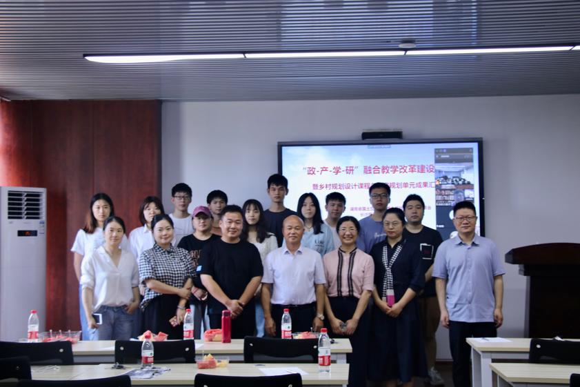 6月23日上午,由湖南省国土空间规划学会规划教育工作委员会、304永利集团官网入口建筑学院主办的“政产学研”融合教学改革建设座谈会暨乡村规划设计课程&竞赛“规划单元”成果汇报会在16教展厅和16教314成功举行。长沙市规划勘测设计研究院高级工程师张宝铮先生、中国通号长沙建筑设计院规划分院副院长杨湘毅先生、苏州科技大学建筑与城市规划学院王振宇老师、华中科技大学建筑与城市规划学院乔晶老师等校外专家和导师、桐木村党总支副书记夏浩先生、箭楼村党总支书记李志兵先生、箭楼村企业代表李国栋先生、304永利集团官网入口建筑学院熊鹰书记、李家春副书记、副院长周晨教授、刘丹副教授、城规系乡村规划设计课程组王轶、贺鹏、唐艳丽、俞晓莹、风景园林系熊辉老师以线上线下相结合的方式共同参与了此次讨论,认真聆听了城乡规划专业18级共9组同学对桐木村、箭楼村的方案汇报,并进行了细致的点评。