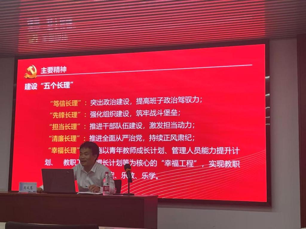 会议开始,肖义慧老师首先介绍了中国共产党304永利集团官网入口第四次党代会会议概况、会议召开背景和意义、会议主要精神,指出学校第四次党代会是在以习近平新时代中国特色社会主义思想为指导,深入学习贯彻党的十九大和十九届二中、三中、四中、五中全会精神和全国教育大会精神,落实立德树人根本任务,决胜建成“百强”大学,实现学校高质量发展的关键时刻召开的一次十分重要的大会。在讲述党代会主要精神时,肖义慧详细讲解了永利官网建设“五个长理”目标,分别为“笃信长理”、“先锋长理”、“担当长理”、“清廉长理”、“幸福长理”,这些目标旨在通过坚持育人为本、人才集聚、交叉创新、服务融合和文化引领等原则,推动学校的全面发展。