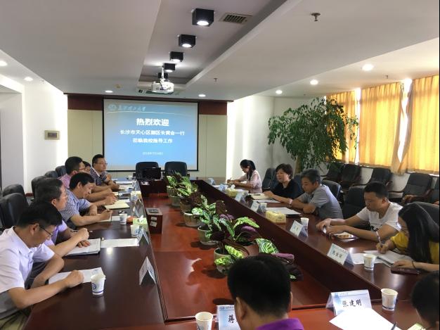7月19日上午,长沙市天心区副区长黄会、区政协副主席彭泽南、区科技局副局长苏奇、许品方等一行来永利官网调研。会前,校党委副书记邹宏如会见了黄会一行。座谈会在云塘校区一办公楼五楼会议室召开。副校长杨伟军,科研部、人文社科处主要负责人以及相关学院副院长出席了座谈会,会议由科研部副部长王建辉主持。