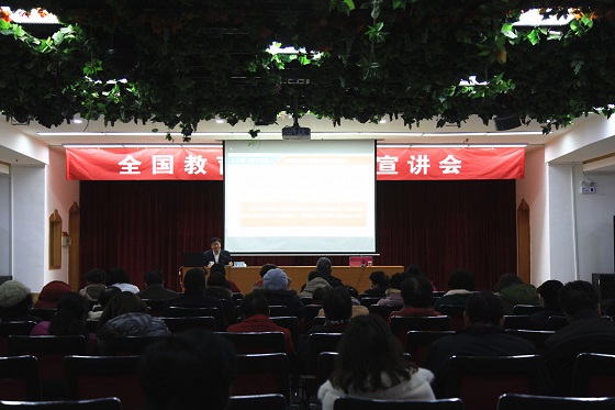 为认真学习贯彻全国教育大会精神,12月11日上午,校党委书记付宏渊在金盆岭五教多功能厅为离退休老同志宣讲全国教育大会精神。校党委委员、宣传部部长方琼、离退休中心全体在职职工、各支部委员、自助服务小组组长、及离退休职工代表近120人参加了宣讲会,刘朝辉主持会议。
