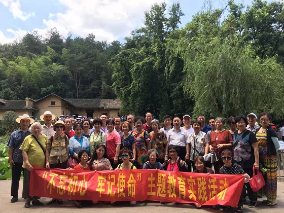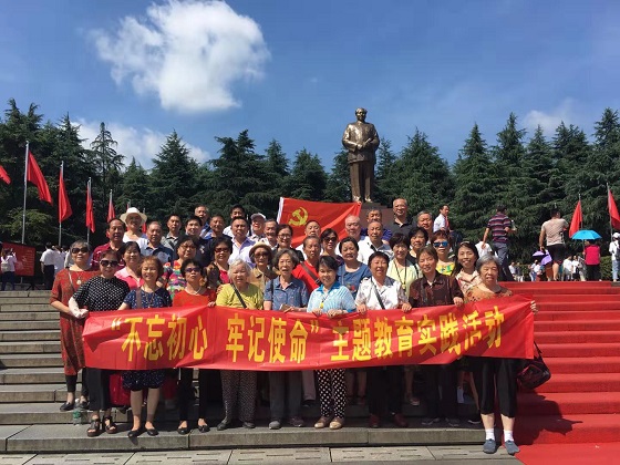 6月20日,长沙地区艳阳高照,晴空万里,人们首次感受到长沙夏天的滋味。为贯彻落实中央关于在全党展开“不忘初心、牢记使命”主题教育的精神,根据离退休教职工服务中心党委的部署,黄区退休行政党支部与教师党支部联合组织党员奔赴红太阳升起的地方—韶山开展“不忘初心、牢记使命”暨庆祝建党98周年党日活动。40余名老党员参加实践教育活动。离退中心主任周旭明亲力亲为,自始至终参与扶侍照顾老党员、指导活动的进程。
