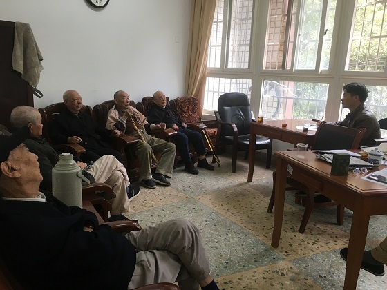 10月22日上午,永利官网离休干部“不忘初心、牢记使命”主题教育座谈会在东校区离休活动室召开。离休干部许宝存、钟希尧、谢祖钧、刘光霁、郭斮非,离退休中心党委书记刘朝辉、副主任徐亮参加了会议。