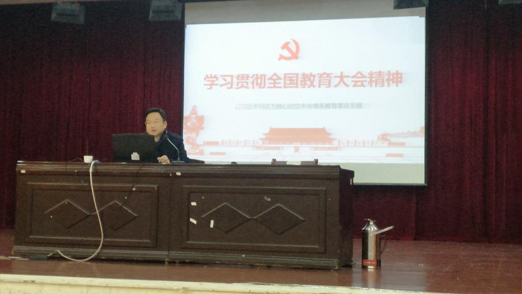 12月11日下午2点,校党委副书记邹宏如在云塘校区文科楼B-204,为马克思主义学院和物电学院教职工宣讲全国教育大会精神。宣讲会由马克思主义学院党委书记易显飞主持,物电学院党委书记唐立军参加。