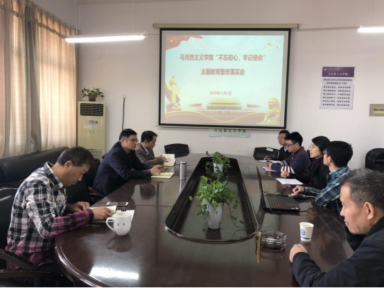 2019年11月1日下午4点在云塘校区文科楼B601开展了马克思主义学院主题教育整改落实会议。本次学习会议由院长陈万球主持,院领导班子成员、院中心组、主题教育领导小组成员、科职干部、教工支部书记及支委参加。