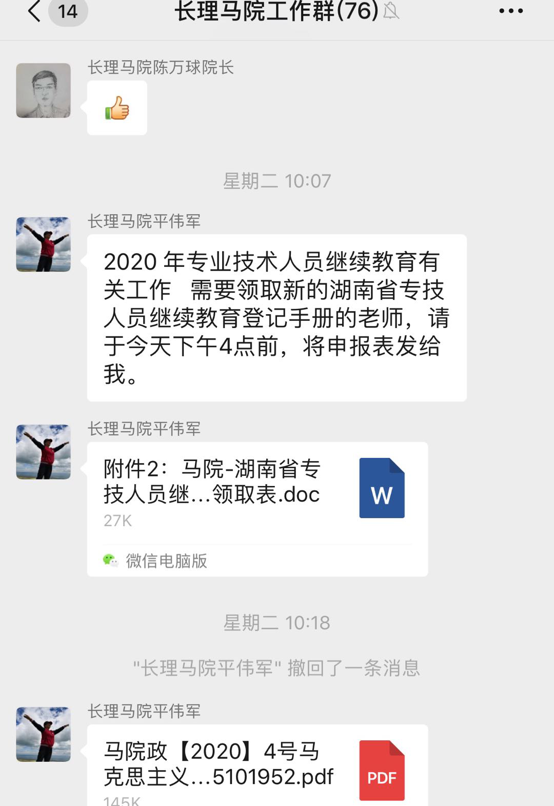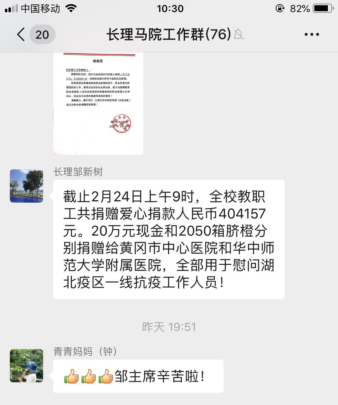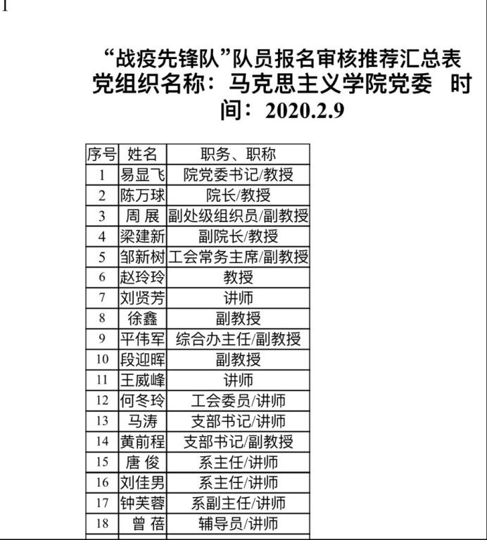 2月7日学校招募“战役先锋队”,邹老师说“我是老党员,我报名。”“截止到目前,马院参与学校‘橙心橙意·助力抗疫’捐赠的老师共有59人61次。谢谢美丽的你爱心之举。”2月15日学校工会发起了与对口扶贫村共同助力湖北抗“疫”的爱心活动,邹老师带头响应并向全院教师积极发动捐赠、及时公布进程,让更多的爱快速汇集。“亲爱的老师们,按时健康打卡啦。教育部、学校每天惦记我们的身体健康,想想都幸福。”2月17日起学校要求每位老师进行健康打卡,邹老师戴着老花镜提前摸索网站和APP两种打卡方式的注意细节,耐心解答、沟通每个老师打卡时遇到的问题,每天准时温馨提醒,从细微处温暖着保护着全院每一位老师。2月17日起邹老师还是2个班本科班和2个研究生班近400名学生中国特色社会主义理论相关课程的任课老师,组建班级群、设计教学、上传资料、组织线上互动与作业批改,做为大“疫”情下“停课不停教”线上行的老“新兵”,邹老师说他要更加用心,他要通过课程引导学生树立起抗“疫”从我做起的耐心、对中国特色社会主义制度的信心、励志为中华民族复兴而奋斗的决心。