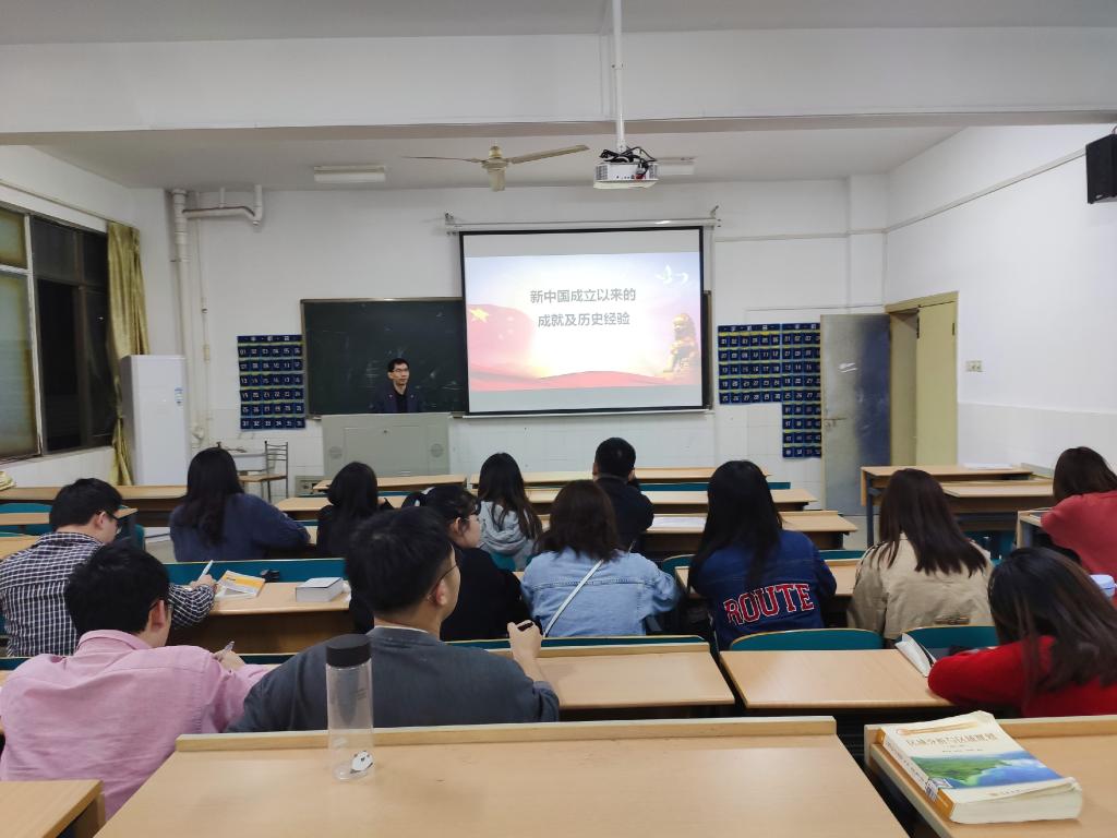 11月10日晚7:00,在304永利集团官网入口金盆岭校区16教313教室,邹新树老师给马克思主义学院和建筑学院2020年下期预备党员培训班全体学员讲授了《新中国成立以来的成就及历史地位》一课。通过这节课,大家对改革开放前后中国取得的重大成就以及我国的历史地位有了更深入细致的了解。