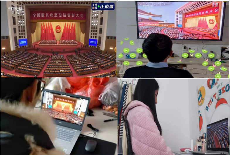 经过全国各族人民共同努力,在迎来中国共产党成立一百周年的重要时刻,我国脱贫攻坚取得了全面胜利。这是中国人民的伟大光荣,是中国共产党的伟大光荣,也是中华民族的伟大光荣。这又一次十四年抗战的伟大胜利,值得每一个中华儿女铭刻在心。支委结合支部实情,先组织全体同志观看直播并撰写学习心得,而后进行线上讨论。同志们踊跃发言,纷纷祝贺伟大祖国取得举世瞩目的成就,祝福中华民族再创辉煌,同时站在一名研究生党员的角度表达了自己的志愿。任帅霞同志认为,我们应当主动了解时事政治,培养政治敏感性,结合实践真正做到“把论文写到大地上”;谭玢同志认为,我们作为个体,力量渺小,但也要发扬“上下同心、尽锐出战、精准务实、开拓创新、攻坚克难、不负人民”的脱贫攻坚精神,争取为祖国做出自己的一份贡献。