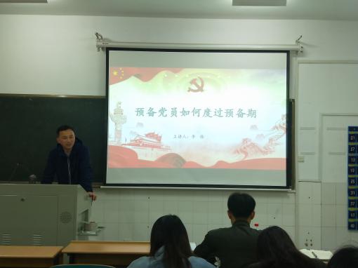 李伟老师从预备期的作用,党员的教育管理,预备期注意事项,以及预备党员的转正程序这四个方面展开课程。李老师用“预备党员的预备期为一年,党组织对预备党员应当认真教育和考察”这一《中国共产党章程》规定引出话题,而后系统讲授了党组织对预备党员的教育考察方式、党员的日常教育和管理、流动党员的管理以及党籍和党员的组织关系管理等方面的内容。他强调,作为党员要有奉献精神,在集体中发挥好榜样模范的作用,牢记中国共产党人为人民服务的宗旨,因为中国共产党本身就是人民的一份子,她没有任何的特殊利益和既得利益,为人民服务就是为自己服务。