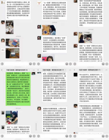 今日,受到表彰的“七一勋章”获得者,都是各条战线党员中的杰出代表,也是我们青年学子学习的榜样。马克思主义学院2019级研究生党支部书记李袁远同志表示,看着总书记授予勋章让人激动,感动。在一片红色和掌声中让人们深刻地体会到每个共产党人的默默付出都非常伟大,正是这些伟大铸就了今天共和国的光辉,激励着我们更加要谦虚谨慎进取,为实现中华民族伟大复兴的中国梦而努力奋斗。在李袁远同志的组织下,19级党员和预备党员纷纷踊跃表达心中所感,向榜样致以崇高的敬意,学习红色精神,向着中华民族伟大复兴的中国梦奋勇前进。