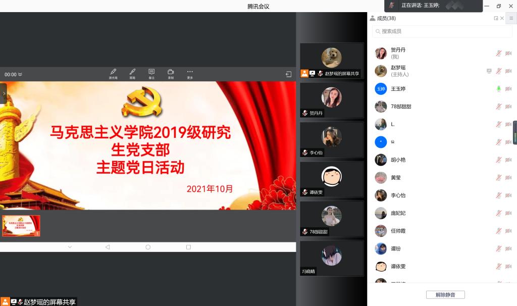 《中国共产党普通高等学校基层组织工作条例》的修订和实施,对于全面贯彻党的教育方针,落实立德树人根本任务,建设高质量教育体系,建设教育强国,培养社会主义建设者和接班人,具有十分重要的意义。为了深入学习了解,马克思主义学院2019级研究生党支部于10月28日晚19:30组织全体党员、预备党员及积极分子开展《中国共产党普通高等学校基层组织工作条例》学习活动。本次活动以线上形式展开,由支部组织委员赵梦瑶主持召开。