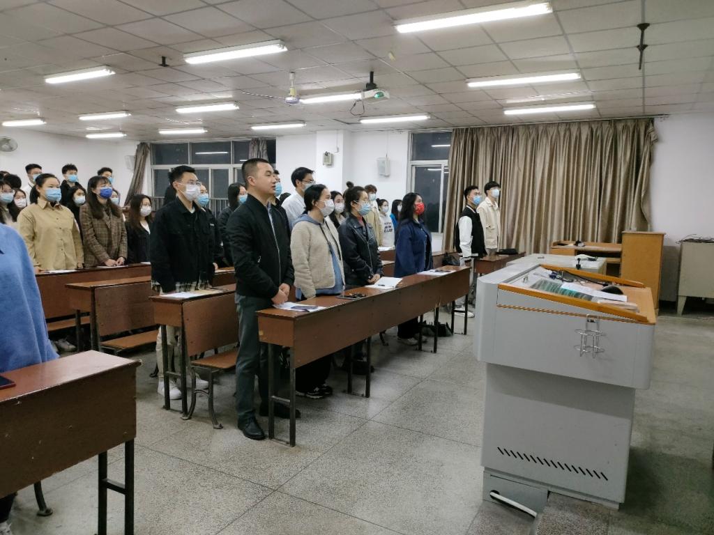 2022年4月15日晚19:00,马克思主义学院2022年上期入党积极分子、发展对象、预备党员党课学习班开班仪式在金盆岭校区4教509教室举行。此次开班仪式由马克思主义学院2020级学生侯颖主持,马克思主义学院副院长唐俊老师、马克思主义学院辅导员曾蓓老师出席,马克思主义学院全体入党积极分子、发展对象和预备党员培训班成员参加。