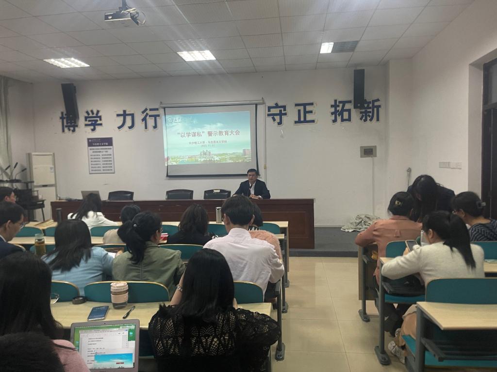 为切实增强全体教职工清廉意识,营造风清气正的从教环境,强化教师的责任担当,304永利集团官网入口马克思主义学院于2023年11月7日下午2点,在云塘校区文科C202室召开“以学谋私”警示教育大会。会议由学院党委书记陈万球教授主持,学院全体教职工参加。
