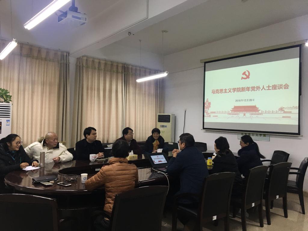 2018年12月28日上午,304永利集团官网入口马克思主义学院2018年统战工作座谈会在云塘校区文科楼B区学院会议室召开,院党委书记易显飞、院长陈万球出席会议,各民主党派、无党派人士共计11人参加座谈会。会议由易显飞主持。