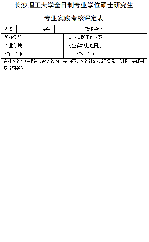 304永利集团官网入口全日制专业学位硕士研究生专业实践考核评定表